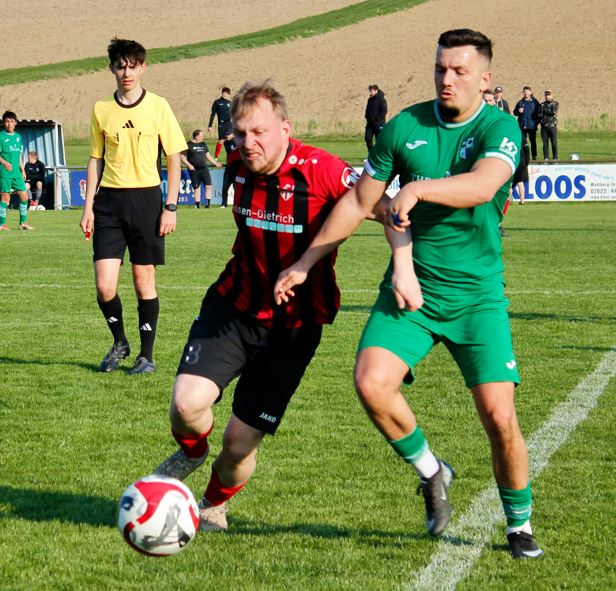 Mit dem Anpfiff der ersten Mannschaften begann eine Phase mit viel Druck auf Grafenhausens Tor. Wir wollten hier unbedingt die Punkte in Wieler behalten, das war das ausgerufene Ziel vom Trainerteam. Früh begann die Umsetzung als Vali aus 16 Metern in der 5. Minute zur 1:0 Führung einnetzte. Kurz drauf eine durchgesteckte Vorlage von Lucas Hassur auf Franco zum 2:0 in der 7. Minute. Weiter geht's leider mit Alu-Pech für Radu. Dann kamen auch die Gäste mal in unsere Hälfte. Jedoch scheiterte auch Grafenhausen am Aluminium. Wir gingen mit einem 2:0 in die Halbzeitpause. Nach der Halbzeit mussten wir uns erstmal wieder sortieren. Die Unterbrechung tat unserem Spielfluss nicht gut, aber Spoth pariert den ersten gegnerischen Angriff. Leider nur die erste gute Möglichkeit von Grafenhausen, die zweite Möglichkeit war dann drin. 2:1 in der 61. Minute.